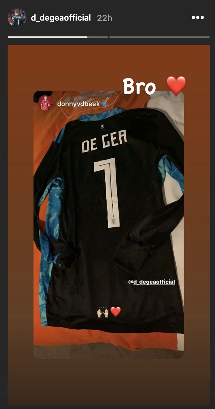 Taking to his social media after the game, van de Beek was quick to show his appreciation to team-mate De Gea for agreeing to swap shirts after the match.