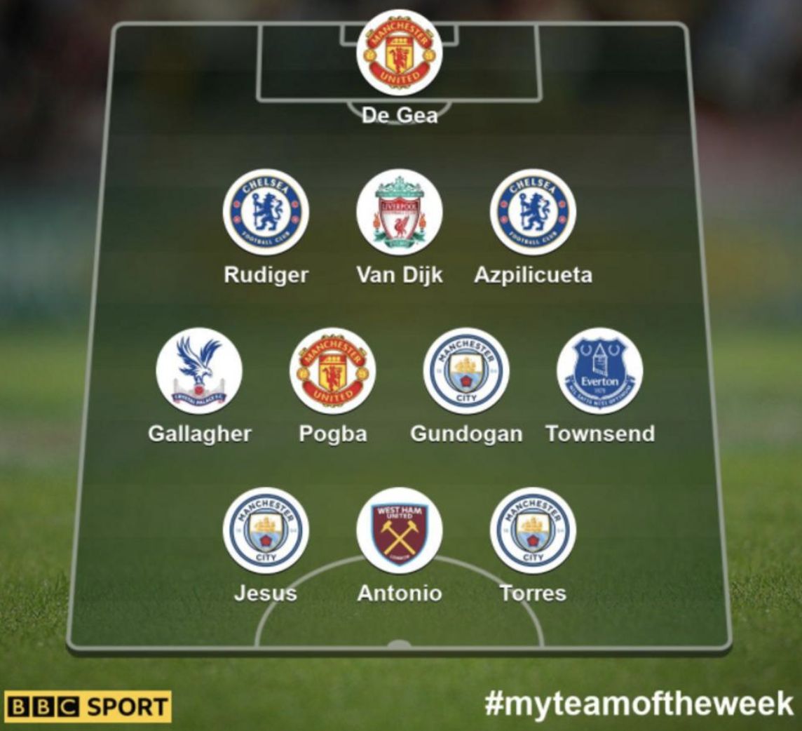 Following the final Premier League match of matchday three, which eventually ended 1-0 to United, BBC Sport has dropped their ‘TOTW’, which includes goalkeeper David De Gea and midfielder Paul Pogba.