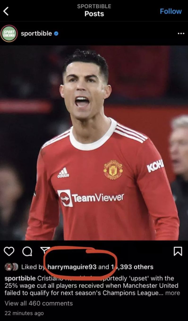 Maguire took the opportunity to like a post from SportBible on Instagram, as seen below: