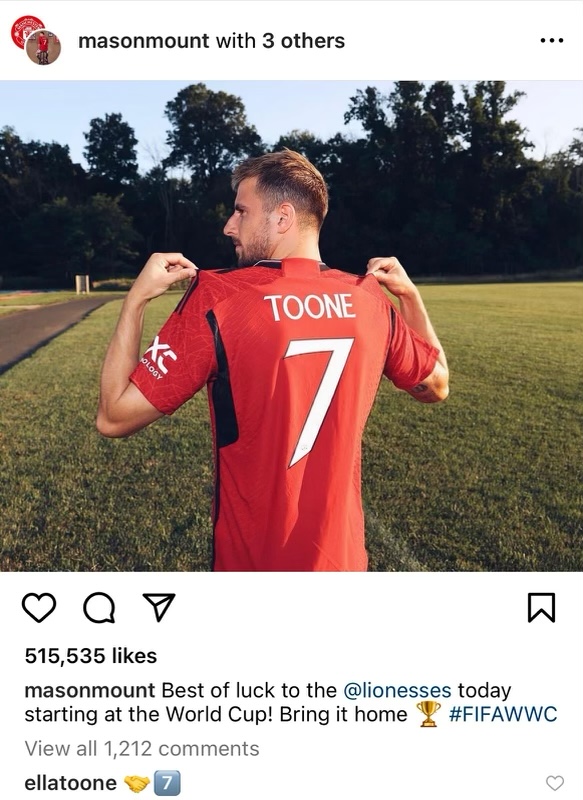 Mount, who is a consistent starter in the Three Lions national squad, has actively shown his backing for the women’s team; he donned Ella Toone’s United shirt when the tournament kicked off, with the two now sharing the iconic No.7 at club level.