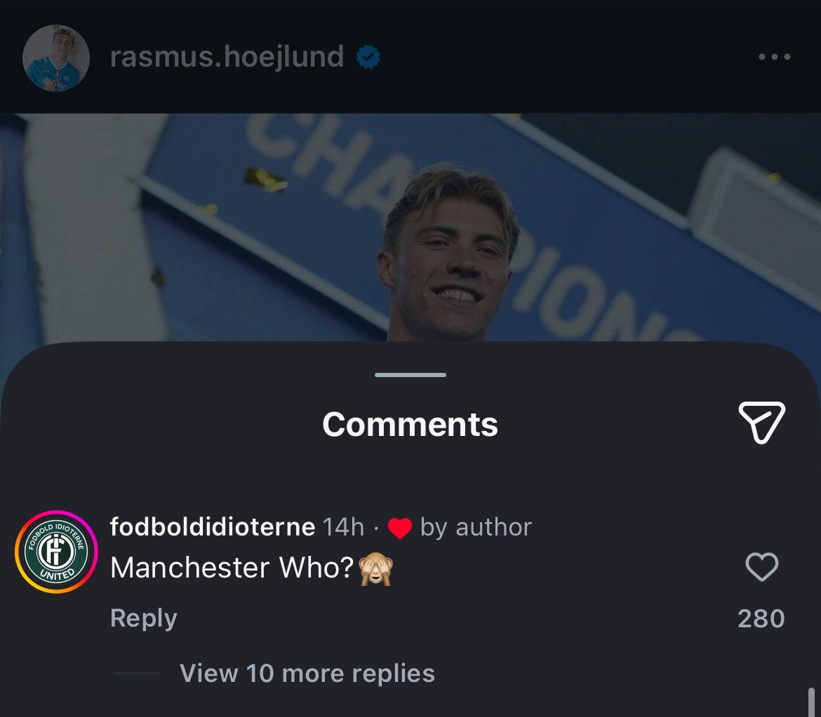 When sharing a snap of him lifting the trophy, he liked a comment on Instagram that read: “Manchester who?”